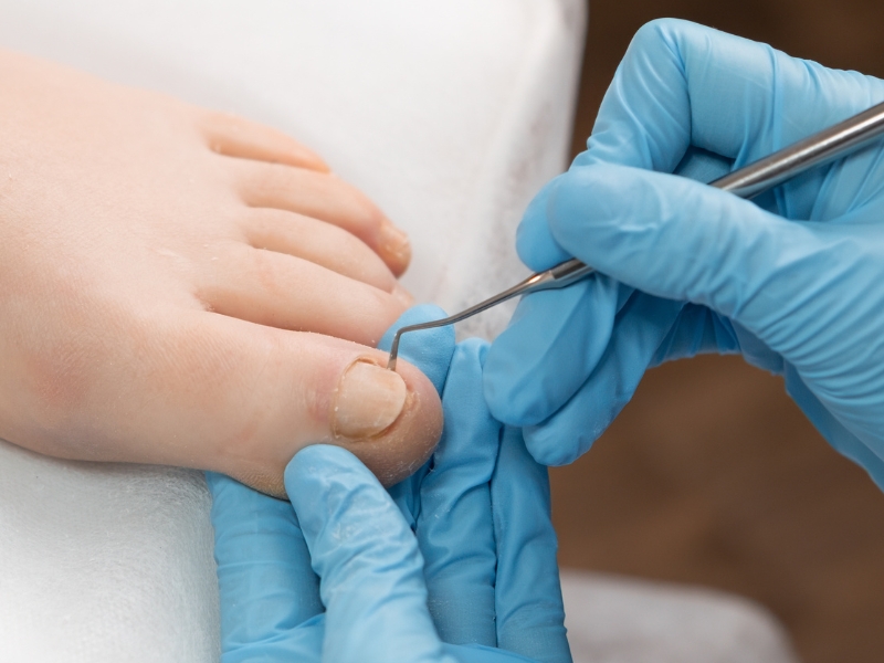 Usuwanie osteofitu palca prowadzącego do wrastania paznokcia lub problemów z jego wzrostem